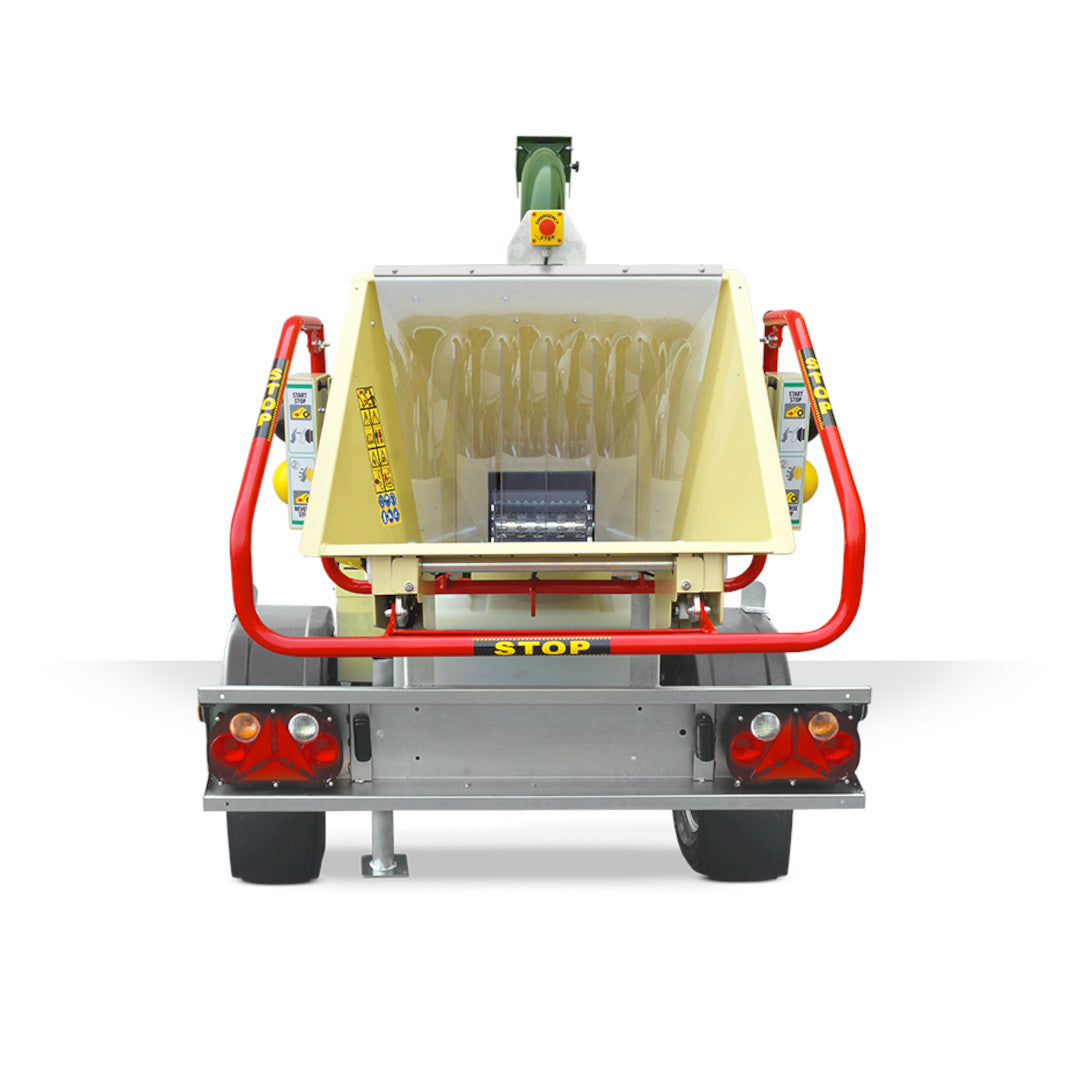 Monté sur un châssis routier, le broyeur de branches NEGRI R240 BHHP210N dispose d'un essieu à 2 roues pneumatiques, homologué route et permettant de transporter la machine de broyage d'un chantier à un autre en toute sécurité. Idéal pour les paysagistes et professionnels des espaces verts, le broyeur de végétaux NEGRI R240 répond parfaitement aux exigences de rendement que demande les professionnels du paysagismes avec un traitement de 7 à 10m3/heure.