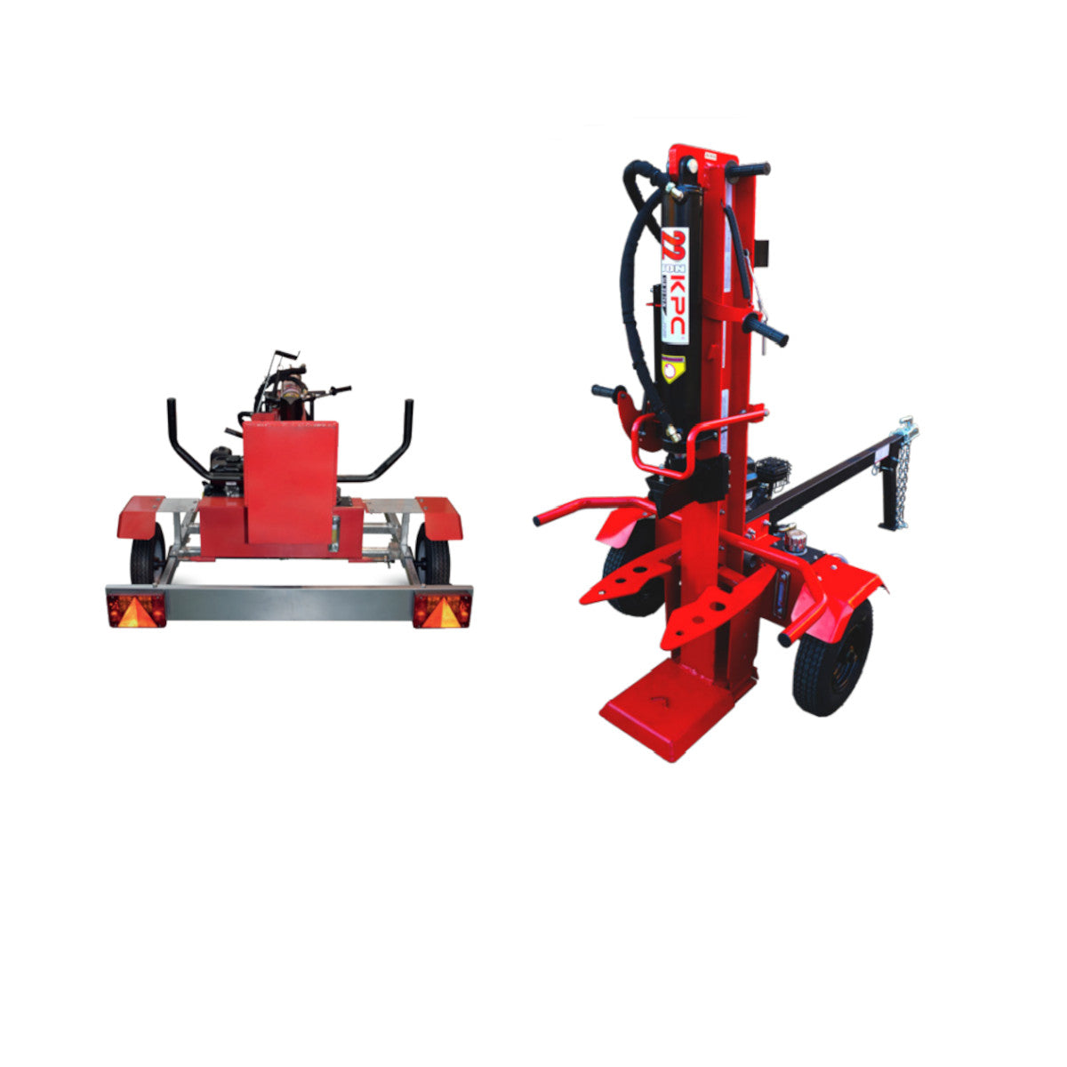 La fendeuse à bûches thermique KPC SLR22TV-NS avec châssis route regroupe tous les spécifications de la version KPC SLR22TV-NS de base avec l'avantage d'être montée sur un châssis routier, homologué pour évoluer sur la voie publique. Très pratique, il suffit d'atteler la machine à un véhicule pour pouvoir déplacer la fendeuse sur le lien d'abattage ou de fendage, même dans des endroits reculés. Fendeuse à bois thermique, la SLR22TV-NS a également l'avantage de fonctionner au carburant 4Temps pour une utilisation isolée, loin des réseaux d'électricité par exemple. Equipée d'un moteur Brigg & Stratton CR950, la fendeuse KPC SLR 22TV-NS développe une puissance de 22 tonnes pour fendre des bois même imposants, d'un diamètre allant jusqu'à 40cm. La longueur maximum des bûches devra quant à elle être de 55cm de hauteur.