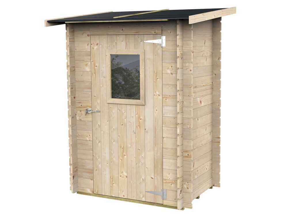 Avec une surface intérieure de 0,9 m², cet abri offre un espace de rangement suffisant pour les objets les plus volumineux, tout en permettant de rester bien organisé. Le toit à une pente, en bardeaux de sapin, enrichit non seulement le design, mais offre également une protection efficace contre les intempéries.