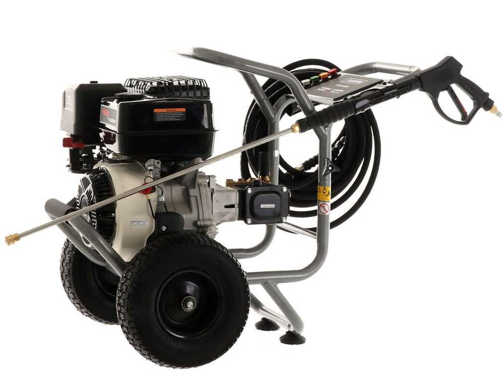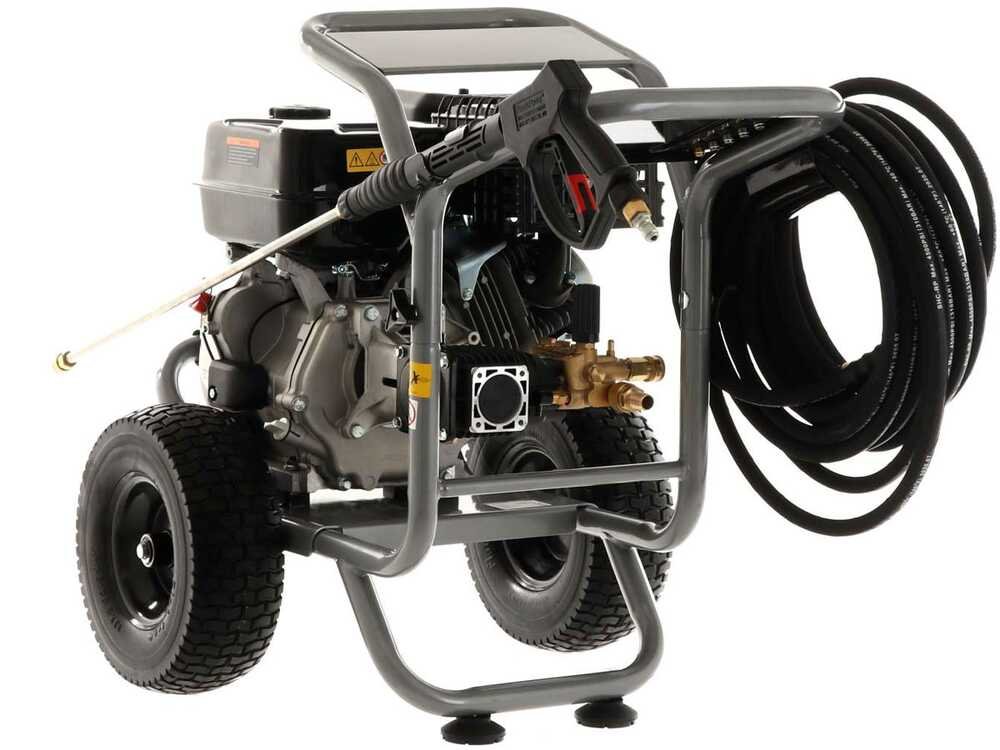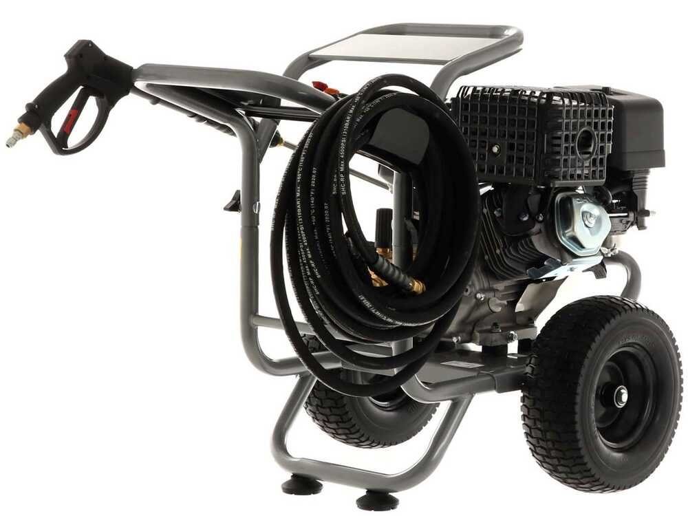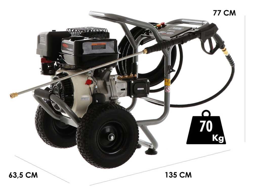 Ce nettoyeur est doté d’un puissant moteur de 420 cm³, qui arrive à atteindre une puissance d’au moins 15 CV. Ces caractéristiques permettent au nettoyeur haute pression d’obtenir un débit maximal qui peut arriver à 15 litres par minute (ce qui équivaut à 900 litres par heure) et une pression maximale de 310 bars. Enfin, le démarrage par lanceur est facile et léger grâce à un système efficace de décompression.