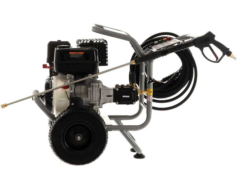 Le moteur de ce nettoyeur haute pression est de type 4 temps à essence avec une cylindrée d’au moins 420 cm³ a été réalisé avec la technologie « OHV ». Ce modèle dernière génération avec technologie à soupapes en tête est adapté aux travaux qui nécessitent une puissance discrète.