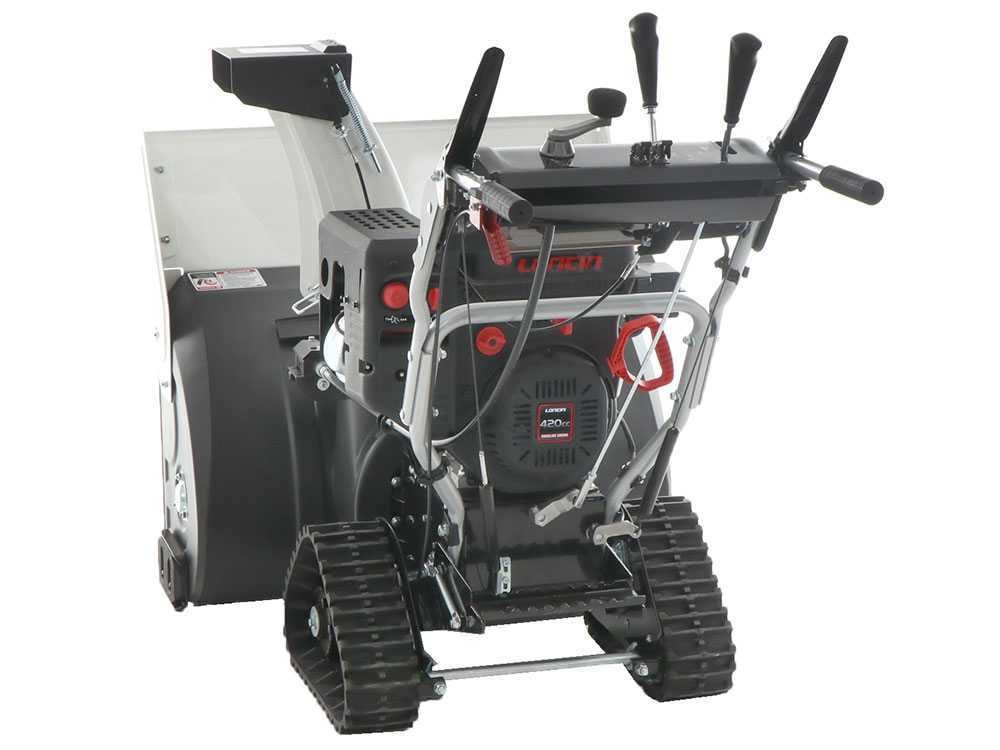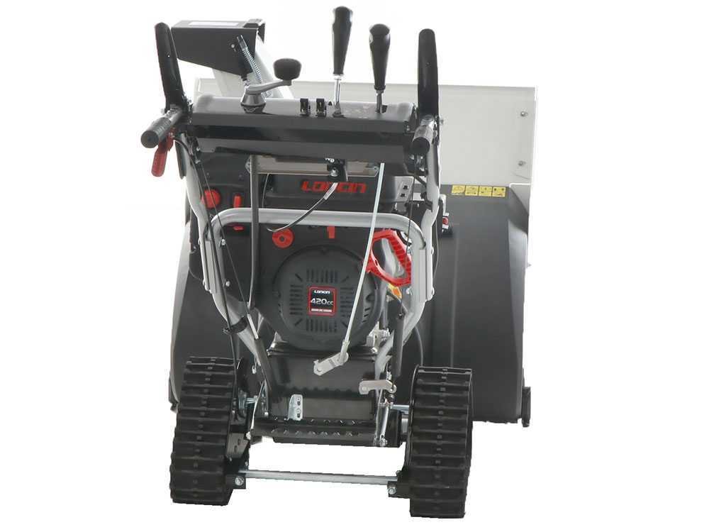 Elle a un moteur Loncin 190F (D) S 4 temps refroidi par air de 420cm3 avec une puissance nominale de 15 CV, et peut travailler sur de grandes surfaces, même dans des conditions extrêmes. Les chenilles à rouleau dont il est équipé, et les différentes positions de travail dans lesquelles il peut être utilisé rendent cette souffleuse à neige très stable et efficace.
