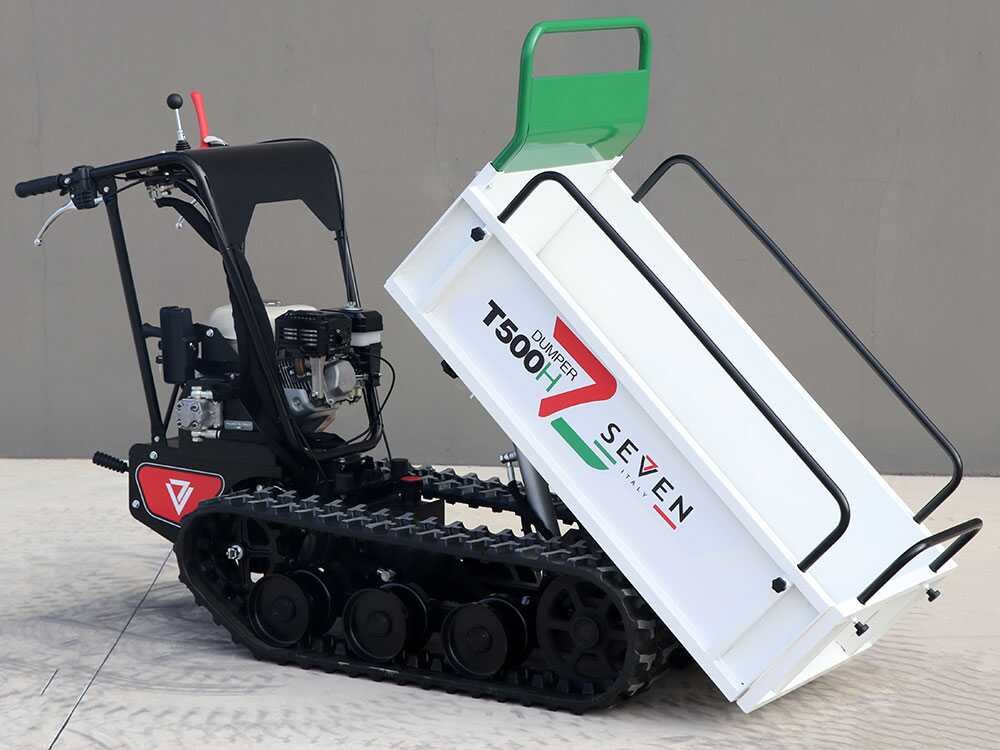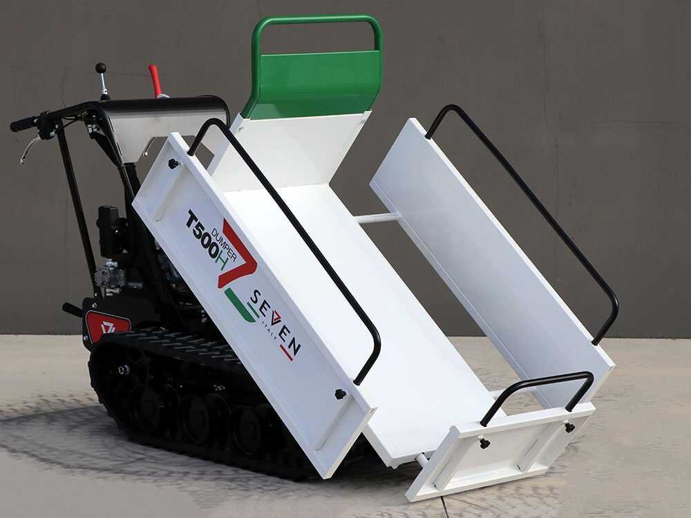 La nouvelle brouette motorisée T500H Seven Italy est une brouette à chenilles avec une charge effective de 500 kg.
