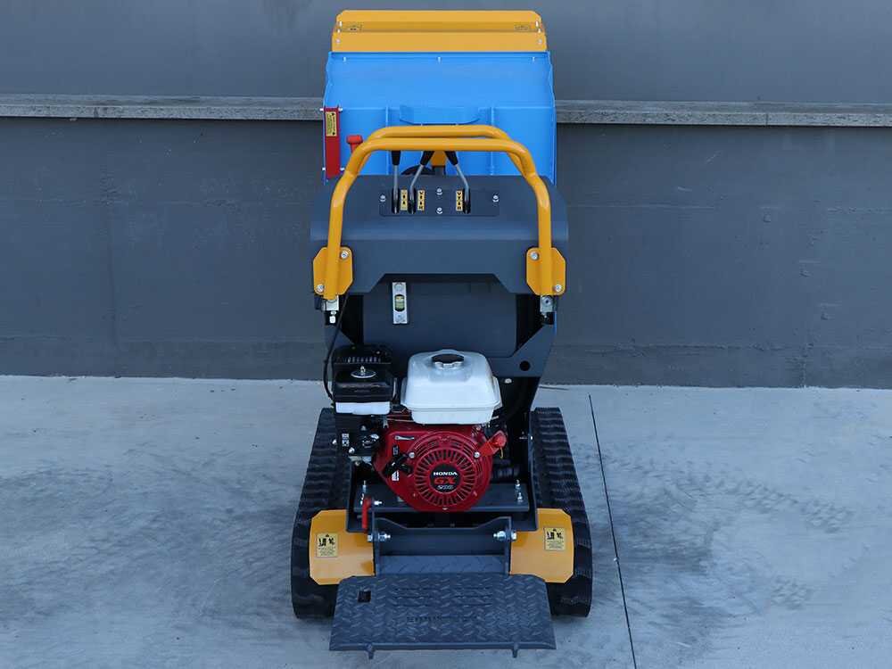 Grâce à la traction sur les chenilles et au puissant moteur HONDA cette brouette est en mesure de transporter des charges.