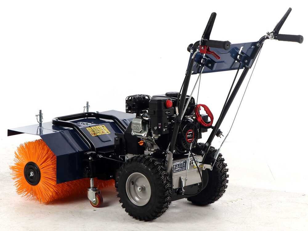 La machine est équipée d’une brosse de 80cm, avec des soies et un carter très résistants, qui tournent de 15° dans deux positions, balaie les détritus de manière frontale. Cette balayeuse est conçue pour le nettoyage et l’expulsion des débris des trottoirs, jardins, allées et autres surfaces au niveau du sol.
