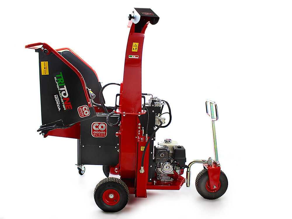 Tritone Super Monster est un broyeur de végétaux à moteur thermique doté d’un rouleau d’entraînement automatique du feuillage, activé par une pompe oléodynamique.