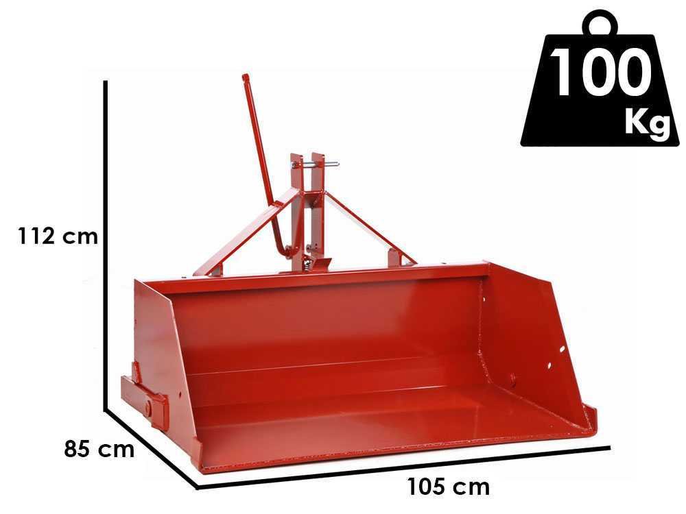 Ce godet arrière pour tracteur est équipé d’une benne mécanique manuelle à basculement rapide.
