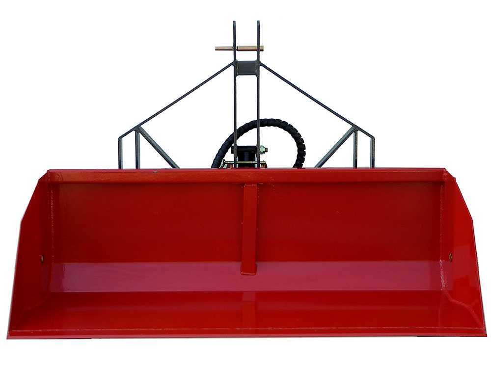 Ce godet agricole arrière pour tracteur GeoTech est doté de basculement hydraulique.