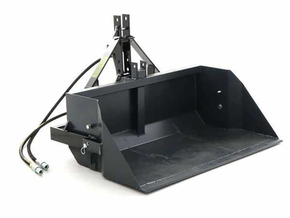 Ce godet arrière pour tracteur BlackStone est équipé d’un basculement hydraulique.