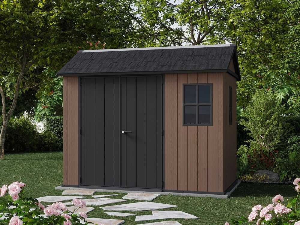 L’abri de jardin Keter Newton Plus 759/975 est une solution raffinée pour embellir votre espace extérieur. Fabriqué en Evotech+, un matériau qui reproduit fidèlement l’effet du bois naturel, il combine esthétique et solidité sans nécessiter d’entretien.