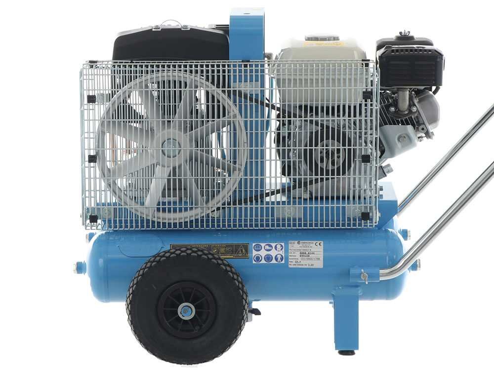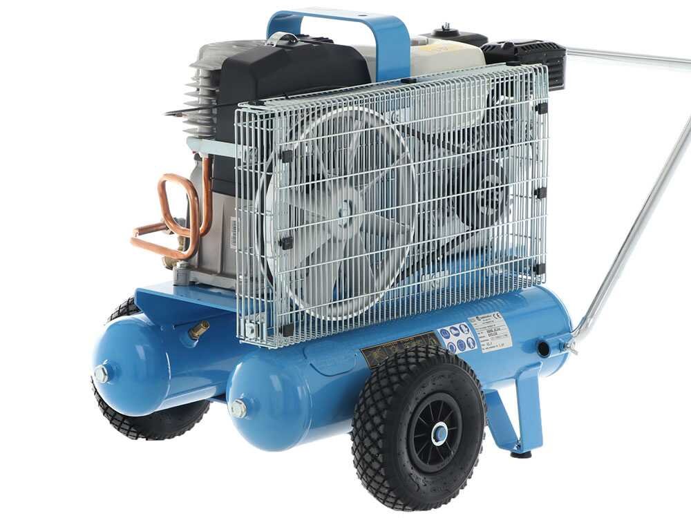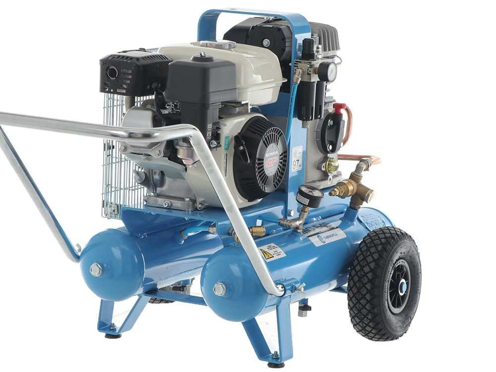 Le motocompresseur est monté sur un châssis équilibré avec double réservoir pour réduire l’effet de condensation. Ce modèle est équipé de deux réservoirs de 11 litres chacun.