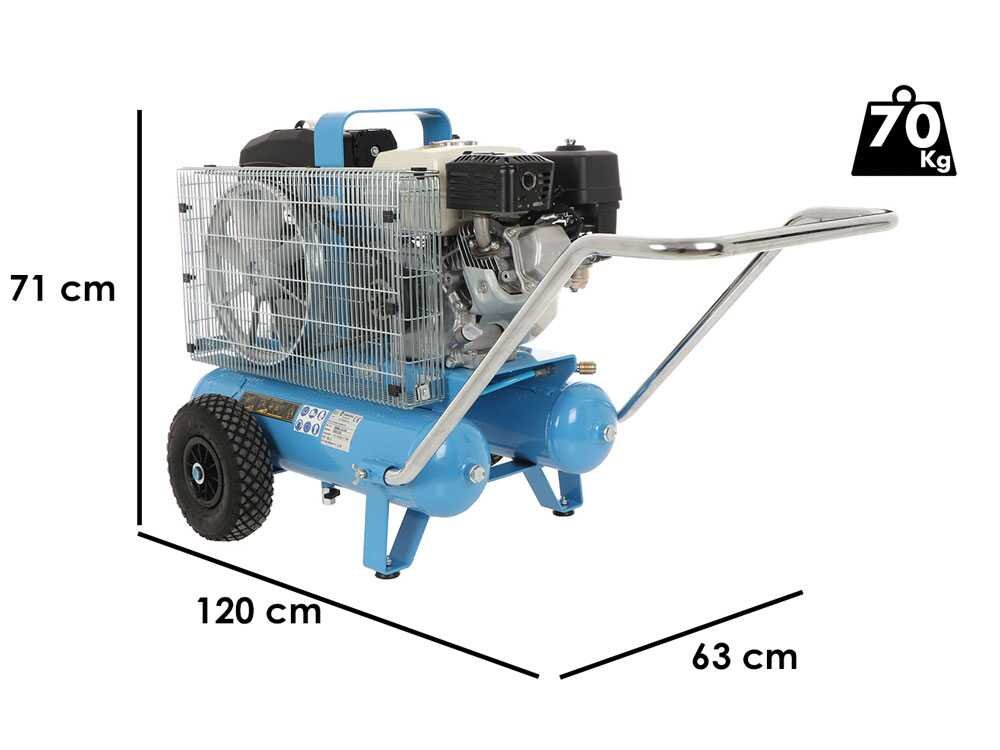 Le motocompresseur est monté sur un châssis équilibré avec double réservoir pour réduire l’effet de condensation, Ce modèle est équipé de deux réservoirs de 11 litres chacun.