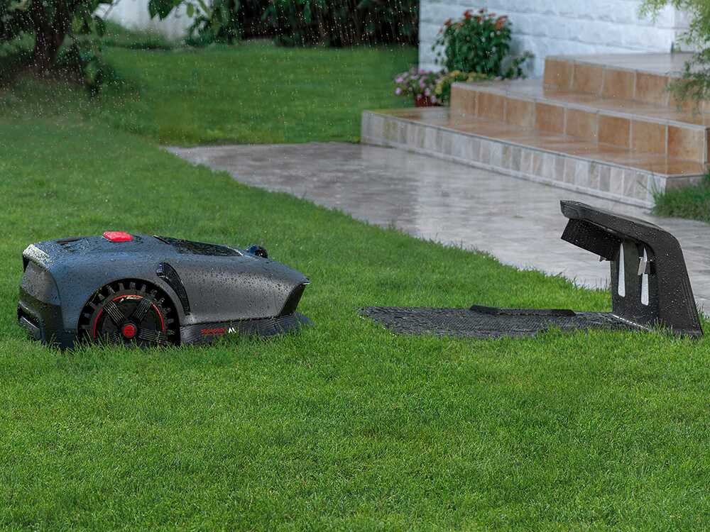 Le système de détection permet au robot de modifier dynamiquement le tracé, garantissant une tonte homogène même sur des surfaces inclinées jusqu’à 45%, correspondant à une pente de 24°.