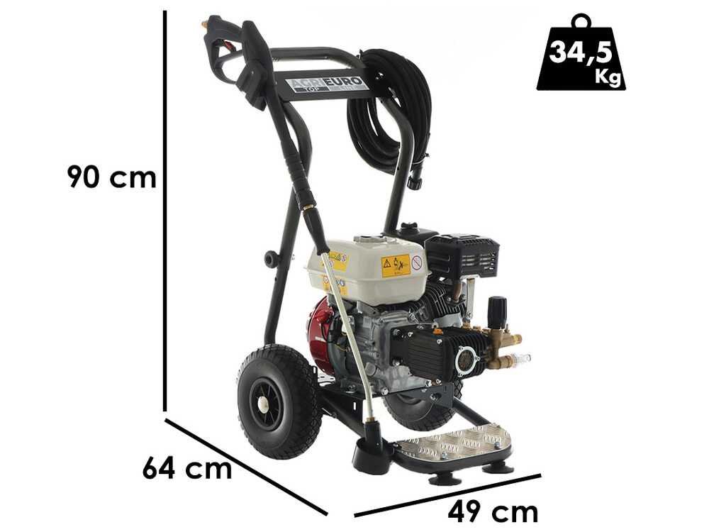 Le moteur de 196 cm3 peut générer jusqu’à 6.5 CV de puissance tandis que la pompe est en mesure d’émettre jusqu’à 200 bars de puissance et un débit de 11 litres d’eau par minute (660 litres par heure).